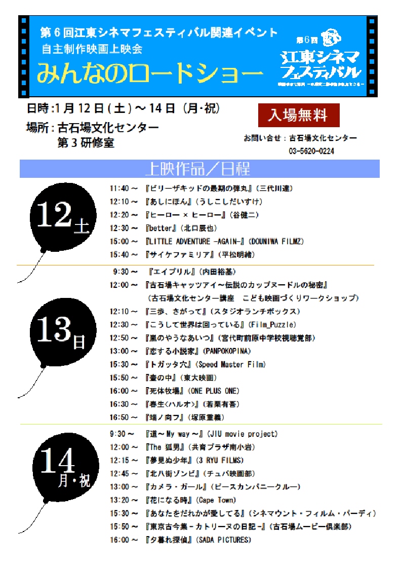映画「あしにほん」の上映おめでとう御座います。 またまた、宣伝いたします〜。 12日は仕事でなければ、行きたいですね。 翌13日がイベントの仕事なので、微妙な所ですが。 今年は色々お世話になりました。 ではでは、よいお年をお迎え下さいませ。 |