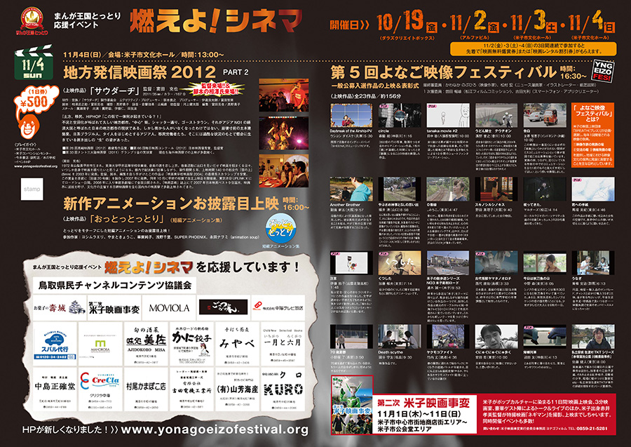 新作「あしにほん」 が、東京の上映会イベントで上映されることになりました。 FRENZ 2012 http://frenz.jp/ 期日:2012年9月15日(土)、16日(日) 2012年9月15日(土)(一日目夜の部) 開場時間:17:30 開演時間:18:00 終了時間:22:30 2012年9月16日(日)(二日目夜の部) 開場時間:17:30 開演時間:18:00 終了時間:22:30 2012年9月16日(日)(二日目深夜の部)←”あしにほん”はここで上映 開場時間:23:00 開演時間:23:30 終了時間:翌5:00 場所:新宿「LOFT/PLUS ONE」 新宿区歌舞伎町1-14-7林ビルB2 TEL 03-3205-6864 新宿駅東口を出てアルタ向かって左の「百果園」に挟まれた道を降りると靖国通りにぶつかります。靖国通りを渡り、「ドンキホーテ」と「つぼ八」の間の道(「中央通り」)をコマ劇場にぶつかるまで直進します。右手の角に「後楽そば」という立ち食いそば屋がみえますので、そこを目印に右折して下さい。その曲がった通りの3軒先くらいにコンビニ「ファミリーマート」があります。その脇にエレベーターと階段の入り口がありますので、そこから地下2階に下がってきて頂ければLOFT/PLUS ONEです。 http://www.loft-prj.co.jp/PLUSONE/access.html 入場:前売¥2000 / 当日¥2500(飲食代別)(二日目深夜の部) 前売りチケットはローソンチケットにて9/1(土)より発売。 【Lコード:38361】 http://frenz.jp/ticket 私の作品「あしにほん」は二日目深夜の部に上映いたします。 出演者順は上映順とイコールではないようです。 いつ上映されるかわかりません。 私のような実写作品はどうやら少ないようですが。 よろしくお願いいたします。 |