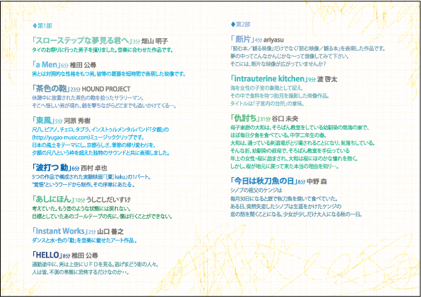 新作「あしにほん」 が、東京の上映会イベントで上映されることになりました。 FRENZ 2012 http://frenz.jp/ 期日:2012年9月15日(土)、16日(日) 2012年9月15日(土)(一日目夜の部) 開場時間:17:30 開演時間:18:00 終了時間:22:30 2012年9月16日(日)(二日目夜の部) 開場時間:17:30 開演時間:18:00 終了時間:22:30 2012年9月16日(日)(二日目深夜の部)←”あしにほん”はここで上映 開場時間:23:00 開演時間:23:30 終了時間:翌5:00 場所:新宿「LOFT/PLUS ONE」 新宿区歌舞伎町1-14-7林ビルB2 TEL 03-3205-6864 新宿駅東口を出てアルタ向かって左の「百果園」に挟まれた道を降りると靖国通りにぶつかります。靖国通りを渡り、「ドンキホーテ」と「つぼ八」の間の道(「中央通り」)をコマ劇場にぶつかるまで直進します。右手の角に「後楽そば」という立ち食いそば屋がみえますので、そこを目印に右折して下さい。その曲がった通りの3軒先くらいにコンビニ「ファミリーマート」があります。その脇にエレベーターと階段の入り口がありますので、そこから地下2階に下がってきて頂ければLOFT/PLUS ONEです。 http://www.loft-prj.co.jp/PLUSONE/access.html 入場:前売¥2000 / 当日¥2500(飲食代別)(二日目深夜の部) 前売りチケットはローソンチケットにて9/1(土)より発売。 【Lコード:38361】 http://frenz.jp/ticket 私の作品「あしにほん」は二日目深夜の部に上映いたします。 出演者順は上映順とイコールではないようです。 いつ上映されるかわかりません。 私のような実写作品はどうやら少ないようですが。 よろしくお願いいたします。 |