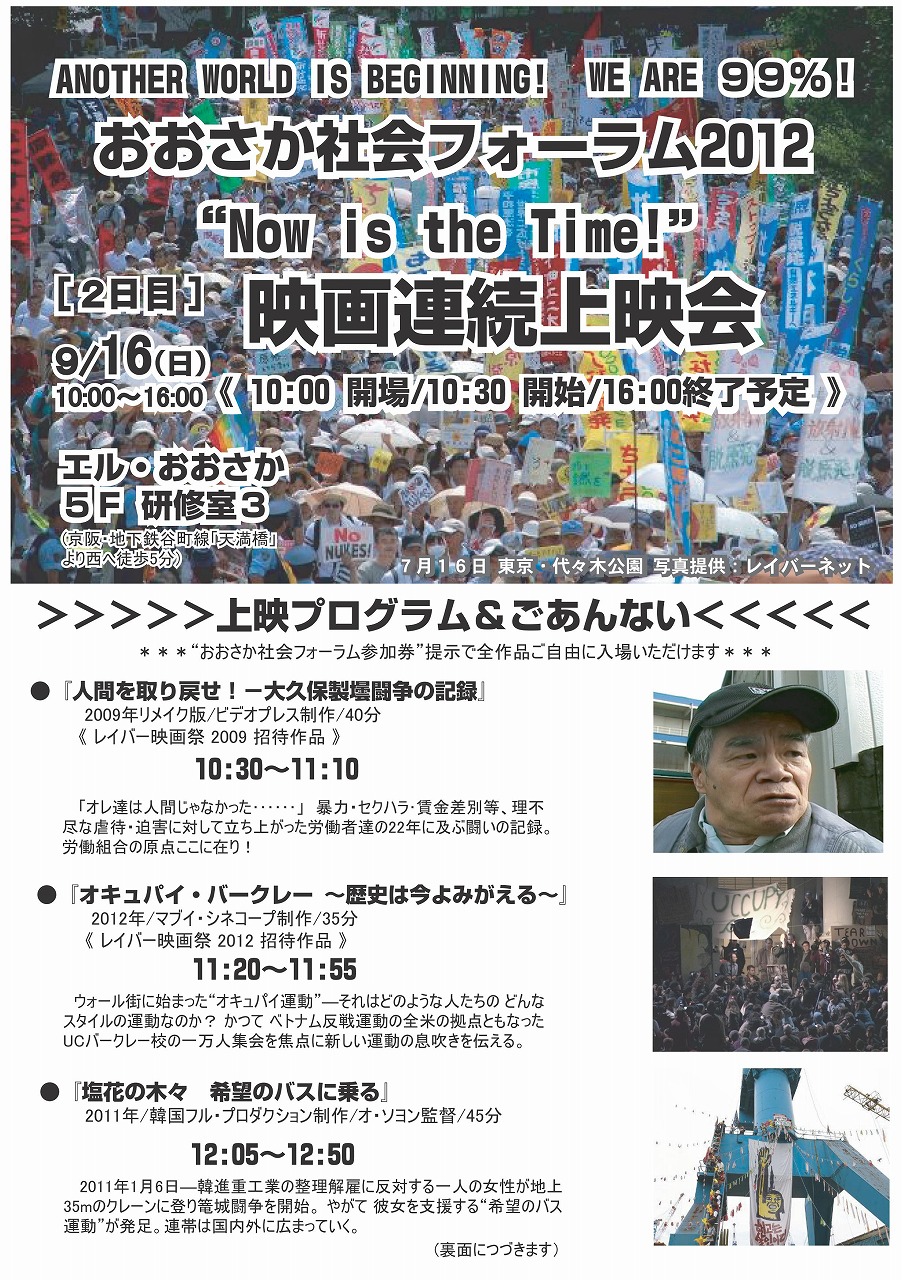 『おおさか社会フォーラム2012 映画連続上映会~今を斬る~』